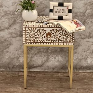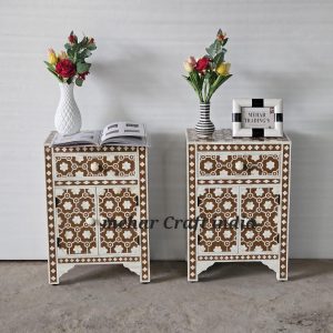 Handmade Bone Inlay Bed side Table, Inlay Nightstand 2 drawer stool, Chest of Drawer, cabinet, End tables, Sofa home Decor